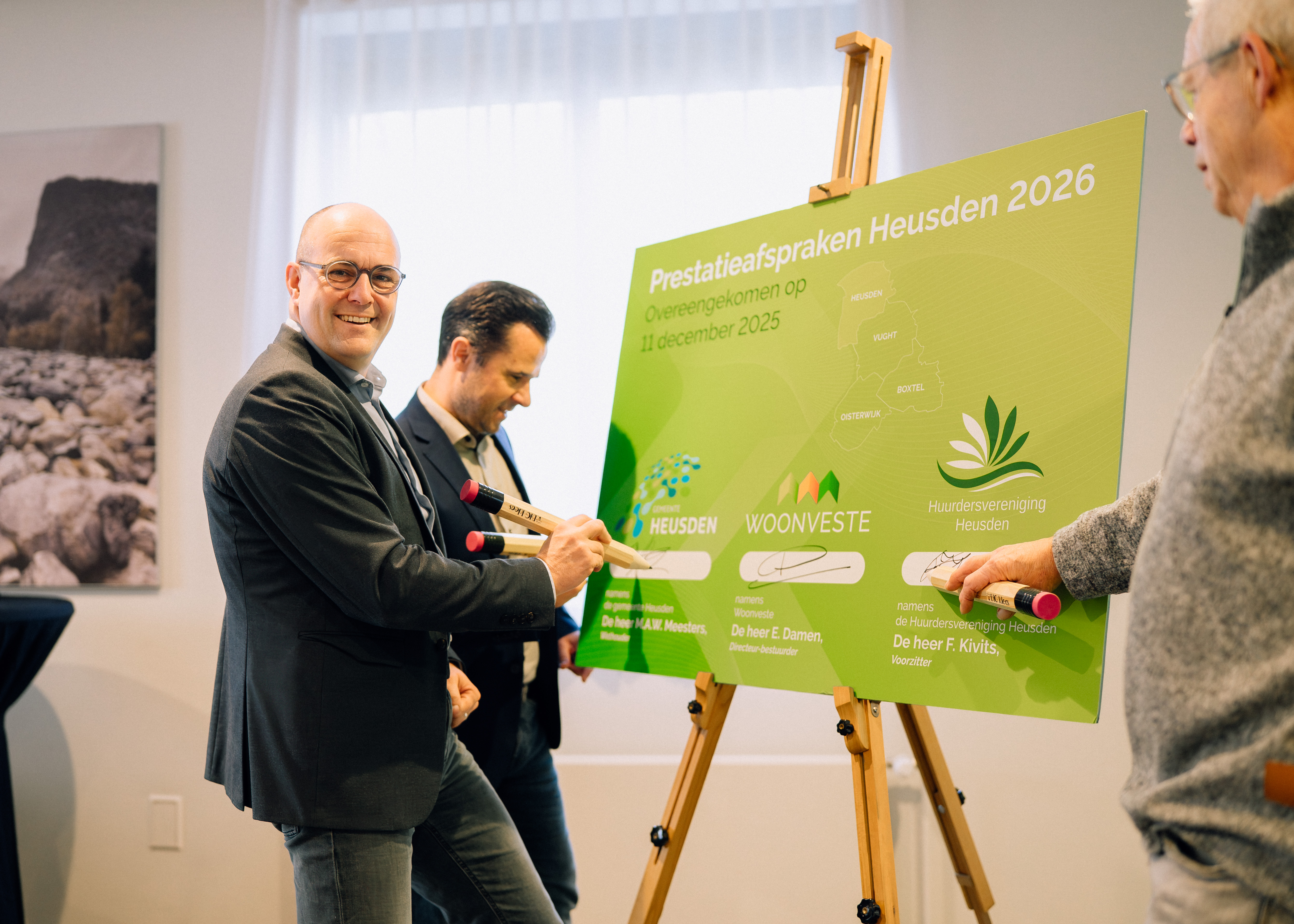 Samen met de gemeente Heusden en de Huurdersvereniging Heusden hebben we de prestatieafspraken voor 2026 vastgesteld. Op 11 december 2025 werden de handtekeningen gezet. In 2026 blijven we inzetten op een sterke samenwerking om gezamenlijk grote maatschappelijke opgaven te kunnen aanpakken, zoals woningtekorten, energietransitie, leefbaarheid en zorg voor kwetsbare doelgroepen.