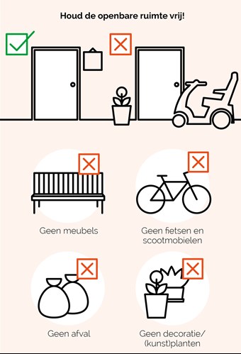 Bij de ingang van je woning mag je geen spullen neerzetten, zoals: